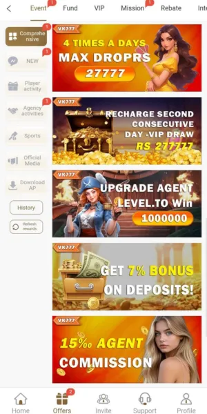 Yes, you can earn extra income by inviting friends to join VK777 through the referral program.